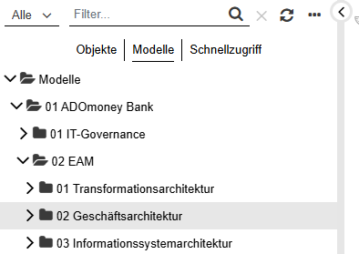 - Erweitern Sie den Ordner "01 ADOmoney Bank", dessen Unterordner "02 EAM", und darin den Ordner "03 Informationssystemarchitektur".