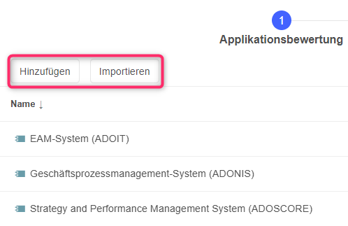 Importieren: Importieren Sie Anwendungen aus dem Repository. Wählen Sie die Anwendungen aus, die Sie bewerten möchten, und klicken Sie dann auf OK.