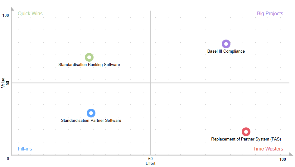 Value vs. Effort Method: Prioritise requirements based on business value and implementation effort.