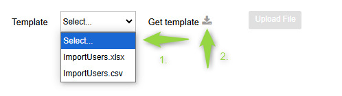 - Go to the administration section → "Users" → "More options" → "Import users from Excel."