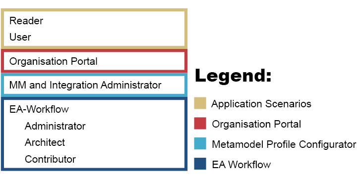 • MM and Integration Administrator: Members of the system role MM and Integration Administrator can choose between various predefined metamodel profiles in ADOIT. Metamodel profiles reduce the number of available metamodel elements and are applied to all users on login.